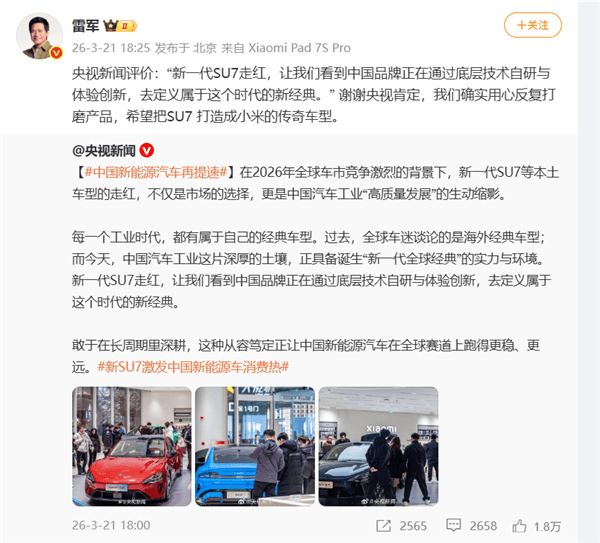 小米集团创举东说念主雷军在嘱咐平台发文显现,SU7系列凝华了跳跃百项技巧升级,材料老本显赫加多的情况下仍坚握亲民订价亚搏(中国)app,源于对技巧自研的强项信念。他相称感谢央视新闻对产物的专科评价,并暗示将以此为能源,握续打磨产物体验,勇猛于将SU7打变成小米汽车业务的标杆之作。这种以用户价值为中枢的发展理念,正在为新能源汽车行业注入新的活力。