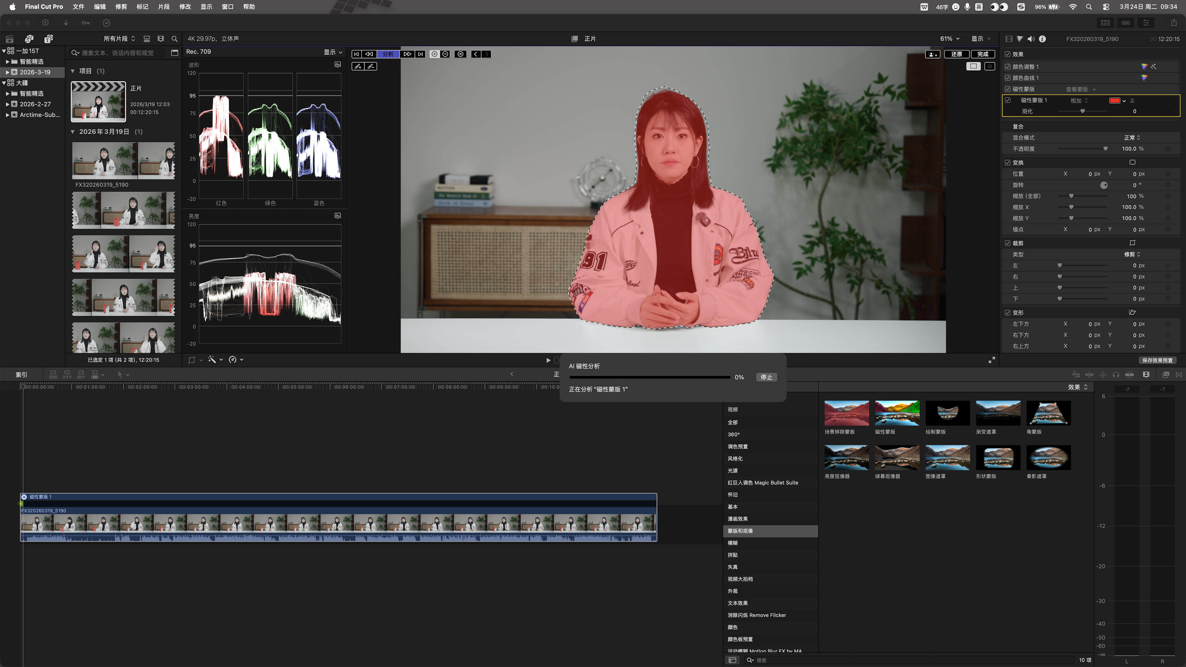 不少Mac用户齐会使用Final Cut Pro来剪视频,而这款软件的磁性遮罩功能,就需要AI运算。经过咱们的实测,使用搭载M5 Pro的MacBook Pro时,由于GPU里面就能平直处理神经网罗运算,悉数这个词遮罩计较的时刻变得更短,抠图速率有了彰着提高,这类依赖GPU加快的AI任务,正是M5 Pro比拟前代提高最权贵的地点。