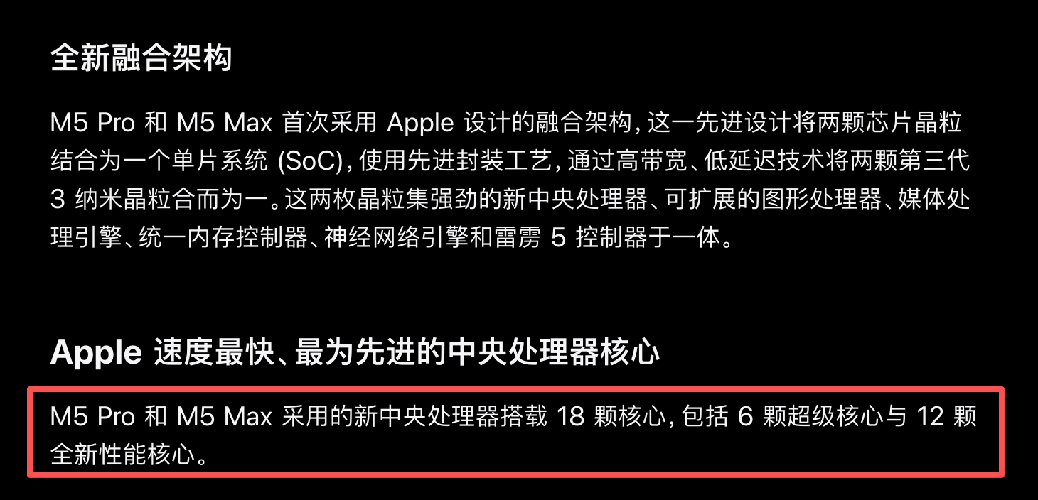 但是M5 Pro这一代,是Apple Silicon出身以来,第一次信得过意旨上的架构更新。