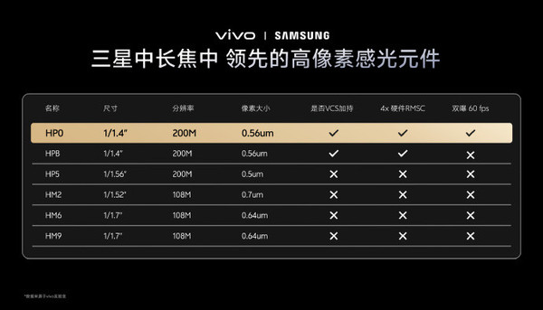 值得一提的是,vivo还展示了与三星融合的中长焦高像素传感器对比数据。其中HPO型号尺寸为1/1.4英寸亚搏app最新版本,领有2亿像素分辨率,像素大小0.56μm,赈济VCS技巧、4倍硬件Remosaic及双摄60帧录制。官方称该传感器单像素感光面积教育30%,满阱容量教育32%,并选用LowNoise4多重降噪技巧,相较传统CDS技巧,在增光环境下最高可质问39.2%噪声。