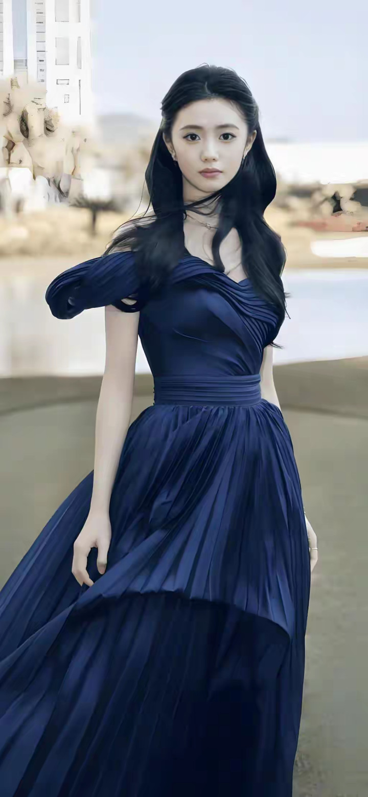 亚搏体育app中国最新版本 程潇斜肩轻纱连衣裙