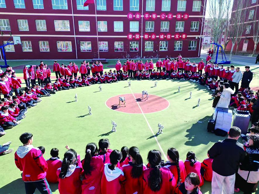 科技展示递次。纯真可人的机器狗在操场上稳定地奔走、翻腾、作揖,亚搏体育app中国最新版本逗得同学们捧腹大笑,公共争相向前与它互动合影。与此同期,无东说念主机在校园上空腾空而起,将科技与艺术完满会通,引得全场师生仰首瞩目,喜悦声连绵继续。