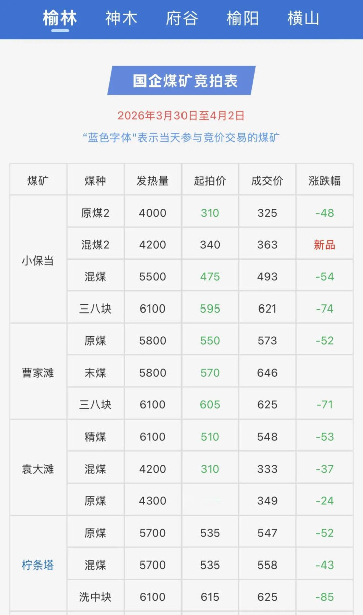 本周陕西榆林降价煤矿统计表