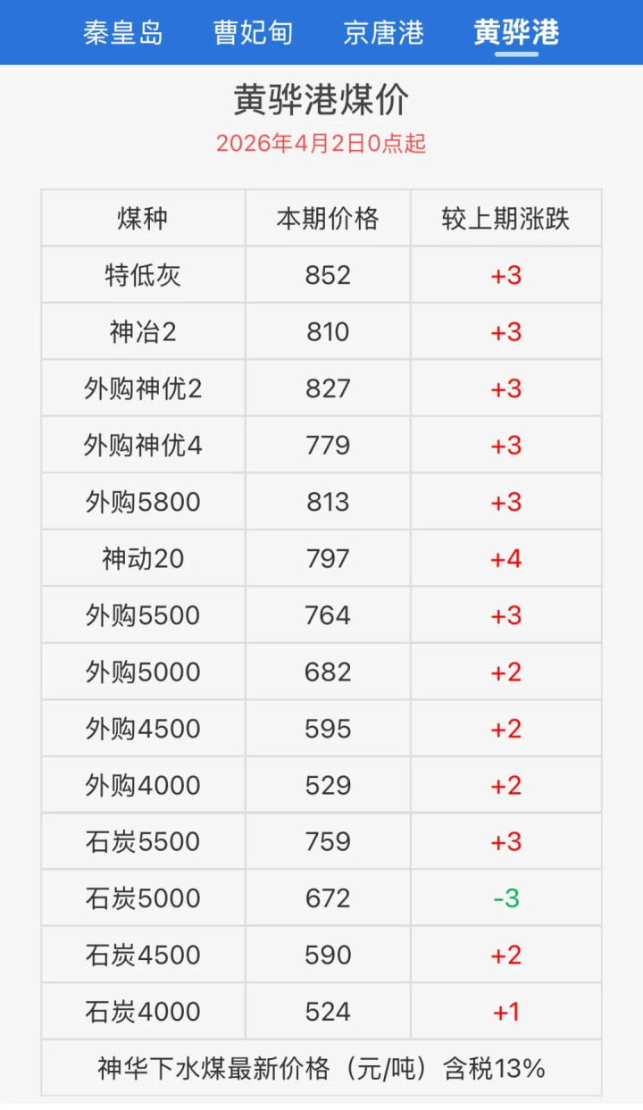 为什么这样说,神华黄骅港4月2日最新调价信息表示,仅5000卡石炭煤种有3元下落外,其他统共煤种沿路飞腾1-4元/吨,这无疑是给刻下口岸煤炭扭捏不定的市集走势,又注入了一剂“强心针”,头部企业给出明信服号后,展望本周环渤海能源煤指数念念下落又会很难。