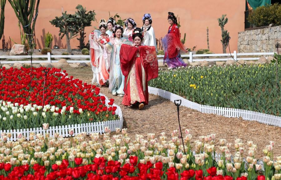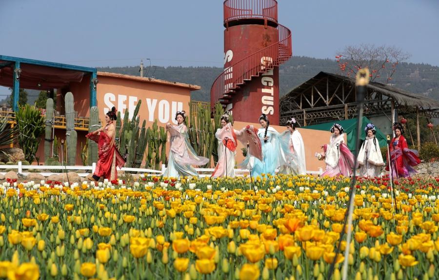近日,安徽省蚌埠市禹会区禾泉小镇景区内的30万株郁金香花开,邻近的市民旅客趁着周末春光,穿梭在花海与“花仙子”之间,常常驻足不雅赏,亚搏体育app拍照迷恋。景区内打造的“花仙”巡游行径,不仅为景区增添了一抹亮丽的色调亚搏app最新版本,也让市民旅客们在观赏好意思景的同期,感受到了中华优秀传统文化的私有魔力,乐享了一段好意思好的周末时光。(李斌 文/图)