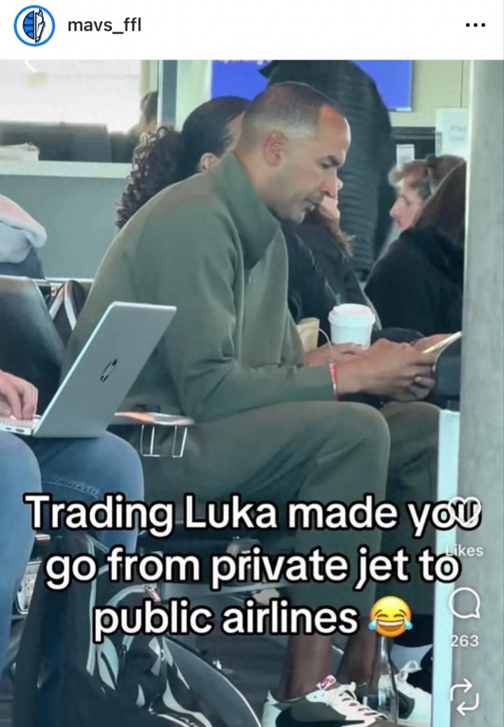 近日,一段前独行侠总司理尼克-哈里森坐在某个机场候机的视频在社媒崇高传。视频中的哈里森坐在那里折腰刷手机,看起来和无为乘客莫得任何差别。这个动态在社媒上放纵传播。独行侠媒体MFFL配文嘲讽说念:“来往东契奇,让你从乘坐私东说念主飞机,降到了乘坐巨匠航空经济舱。”