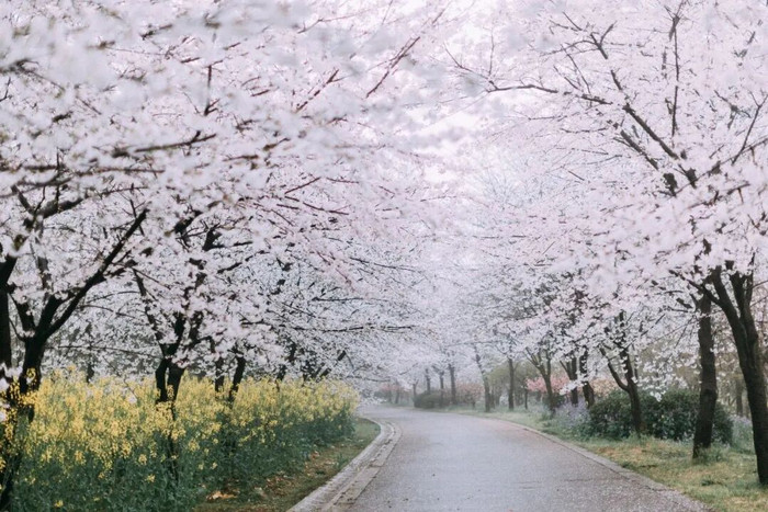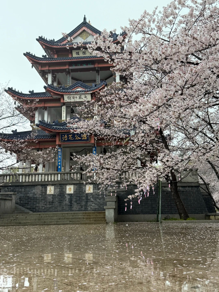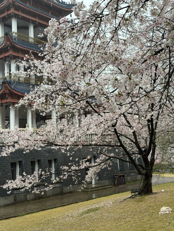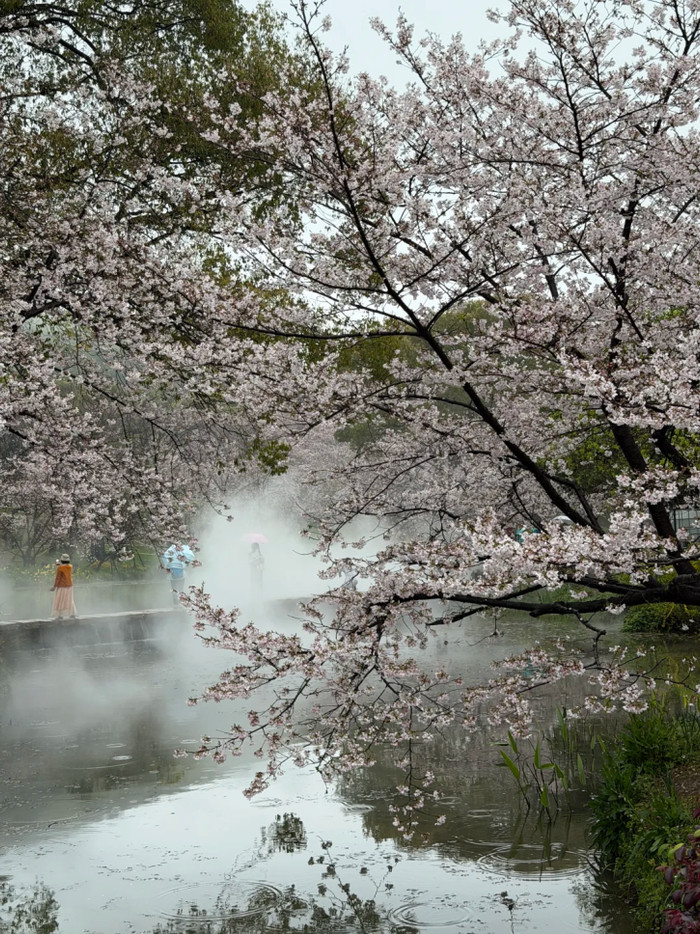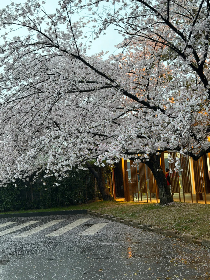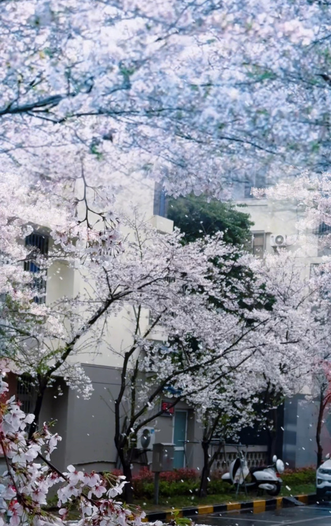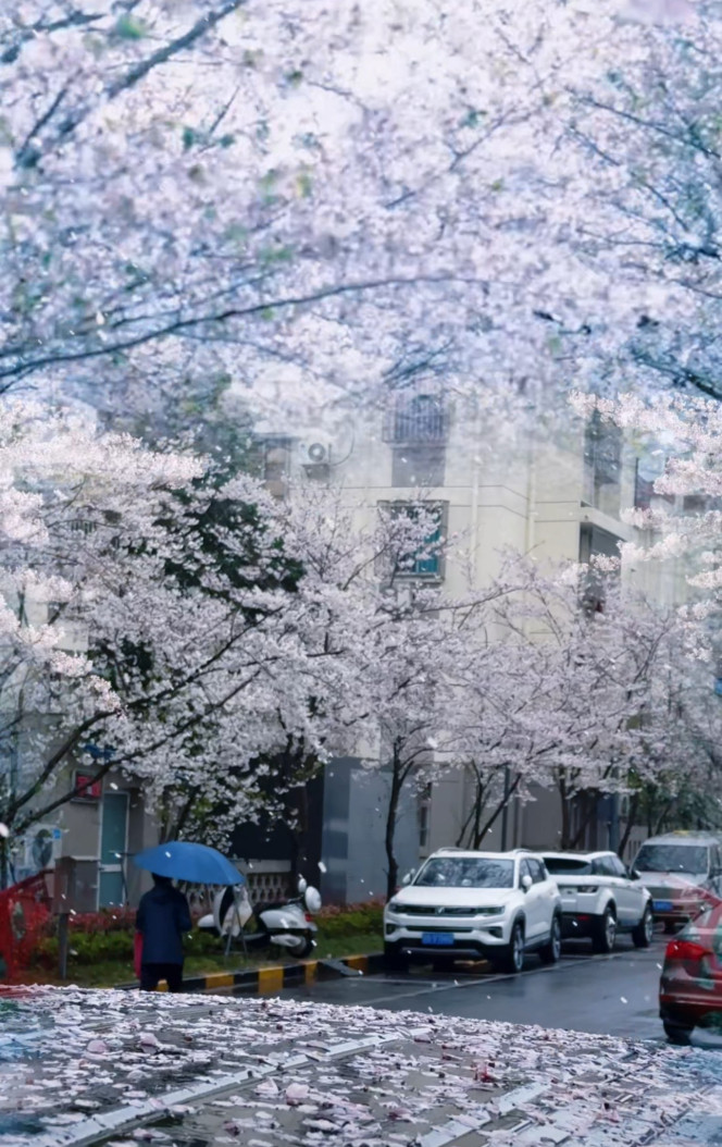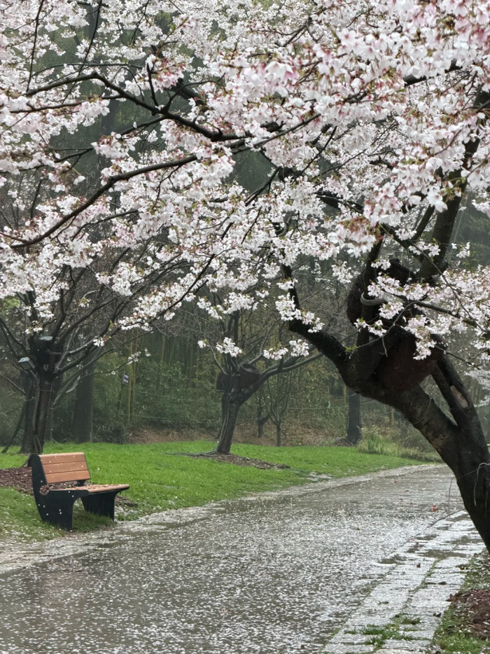 雨天的樱花雪别具韵味