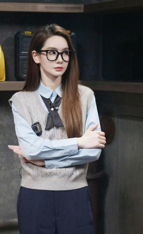 亚搏体育app中国最新版本 戚薇确凿穿搭妙手! 蓝衬衫+灰色马甲+半身裙, 文静减龄又高档!